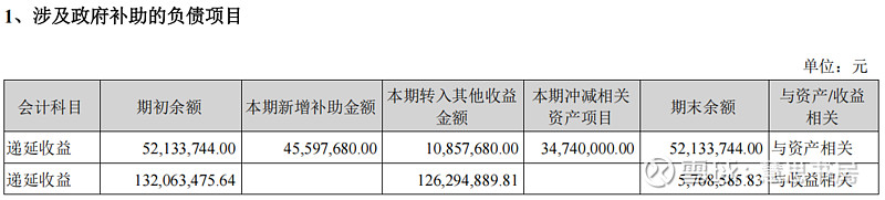 此外,“递延收益”中还有0.58亿元,这是即将收到的政府补助。