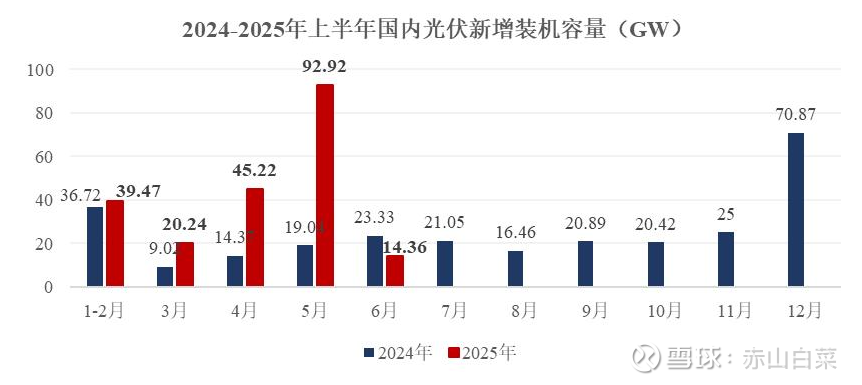 国内新能源电力市场化改革政策密集出台,新能源全面入市政策及新版分布式管理办法发布,推动新能源从“保障性收购+补贴”正式转向“全面市场化+机制电价”时代。政策新老划断窗口期引发上半年短期抢装潮,根据国家能源局数据,2025 年上半年国内光伏新增装机212.21GW,同比增长 107%,其中分布式光伏装机占比 53%。然而,从制造端来看,上半年国内光伏电池、组件产量增速降至 15%以下,多晶硅、硅片产量出现负增长,产业链各环节价格在供需失衡的重压下持续低迷,光伏行业仍处于全面亏损的局面。
