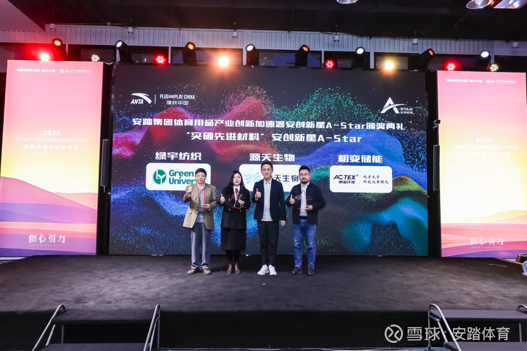 12月12日,在清华大学技术创新研究中心主办的全球开放式创新论坛期间,由安踏集团与璞跃中国联合发起的“体育用品产业创新加速器”(下称“加速器”)颁奖典礼在上海举行。经过多轮筛选与对接,九家初创企业从超过300家报名者中脱颖而出,凭借其在先进材料、物流智造及数字智能三大赛道的硬核创新成果,斩获“安创新星 A-Star”奖项,其中多项创新技术已与安踏集团展开试点合作。