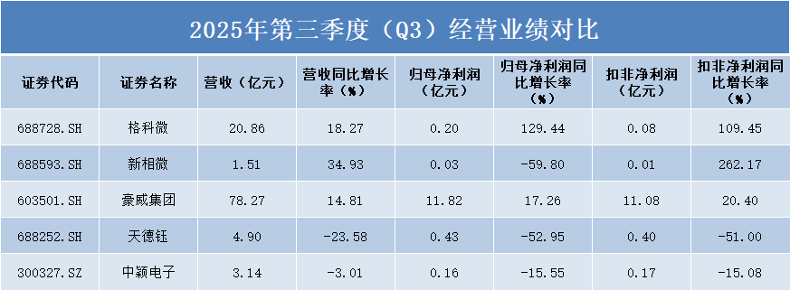 随着2025年第三季度财报披露完毕,A股主要显示驱动芯片上市公司(格科微、新相微、豪威集团、天德钰、中颖电子)的经营表现呈现明显分化。整体来看,行业在营收增长、利润结构、研发投入、存货管理等方面呈现出多维特征。
