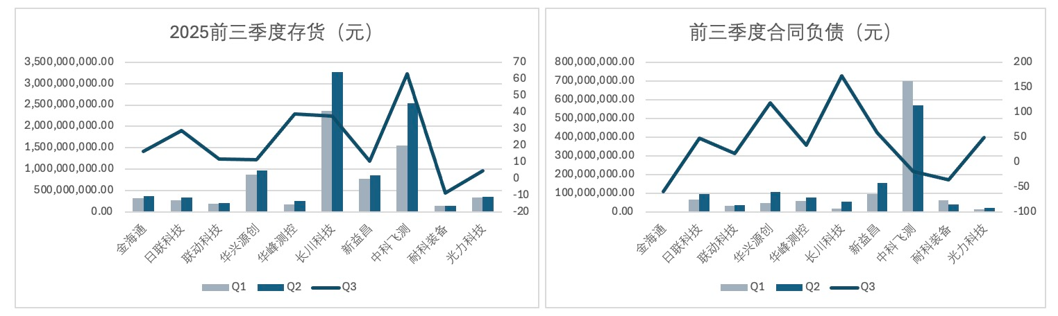存货的普遍攀升是行业处于积极备货周期的明确信号。除耐科装备外,其余九家公司存货同比均增长,其中中科飞测存货增长63.11%,长川科技增长37.82%,这表明企业对未来市场需求乐观,正积极备产以应对饱满的订单。