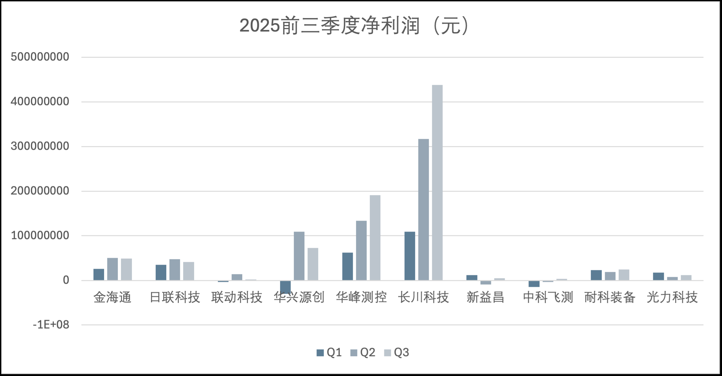具体而言,行业龙头长川科技的增长轨迹最为亮眼,其营收从第一季度的8.15亿元一路跃升至第三季度的16.12亿元,规模与增速均遥遥领先。华兴源创同样表现强劲,第二季度营收猛增至6.49亿元,并在第三季度进一步攀升至6.63亿元,展现了强大的订单获取与交付能力。华峰测控和中科飞测则保持了稳健的上升通道,华峰测控从一季度的1.98亿元增长至三季度的4.05亿元;中科飞测也从2.94亿元稳步增长至5.00亿元,显示出持续的增长潜力。