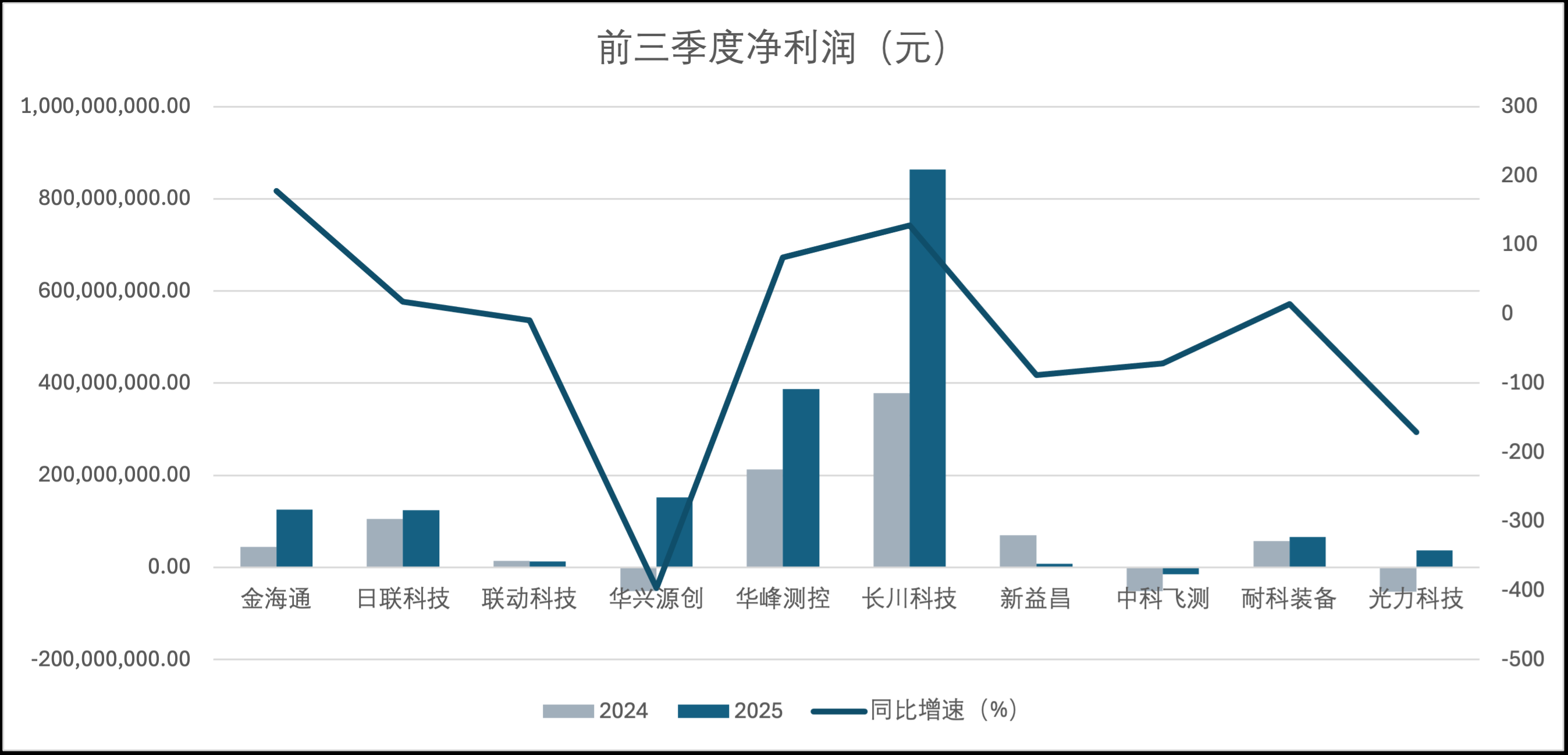 净利润的改善是本期业绩最大的亮点。长川科技不仅营收规模第一,盈利能力更是惊人,前三季度净利润高达8.64亿元,同比增长128.57%。华峰测控以3.87亿元的净利润和81.59%的增速,证明了其高毛利率商业模式的成功。金海通的净利润增幅更为迅猛,从去年同期的0.45亿元跃升至1.25亿元,增幅达177.98%。