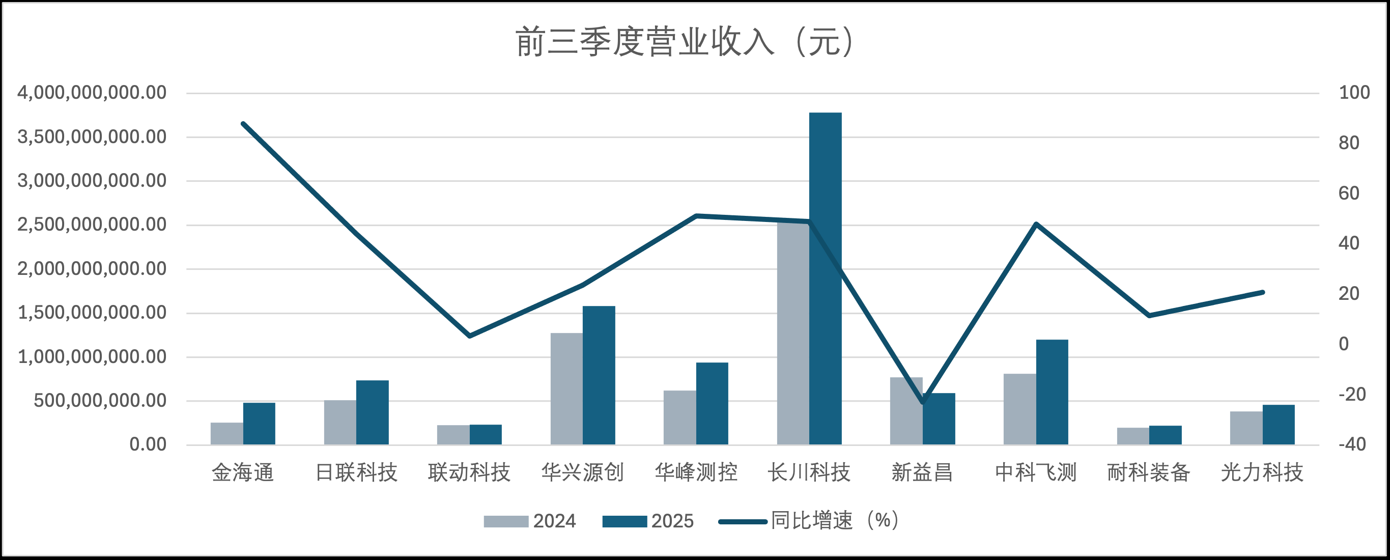 在营收总盘子上,十家企业中有九家实现了同比增长,仅新益昌一家营收同比下滑22.86%,至5.94亿元。长川科技以37.79亿元的营收总额稳坐头把交椅,同比增长49.05%,龙头地位稳固。中科飞测则以12.02亿元的营收和47.98%的高增速,成为成长性最突出的企业之一。金海通虽然规模仅为4.82亿元,但同比增速高达88.20%,展现出“小而美”的强劲爆发力。华峰测控(9.39亿元,+51.21%)和日联科技(7.37亿元,+43.95%)也保持了高速增长。