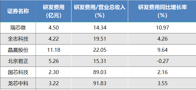 龙芯中科前三季度研发费用3.51亿元,研发费用占营业收入比例高达91.83%,在统计的6家嵌入式CPU公司中比例最高。龙芯中科坚持LoongArch自主指令集,3B6000M、3A6000 等系列芯片形成系统级性价比优势。