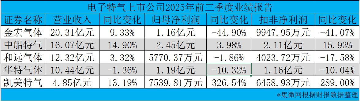 2025年前三季度,中国电子特气行业受益于下游半导体需求回暖和国产替代推进,核心上市公司营收呈现“多数正增长、头部稳领跑”态势,但盈利分化格局进一步加剧。