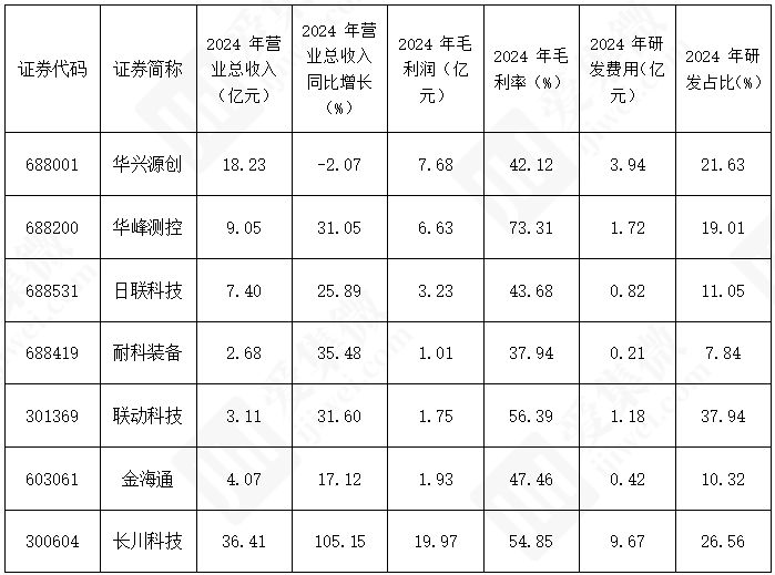 中国半导体上市公司数据方面,《报告》以华兴源创、华峰测控、日联科技、耐科装备、联动科技、金海通、长川科技等7家上市企业为样本,构建了全方位对标体系。