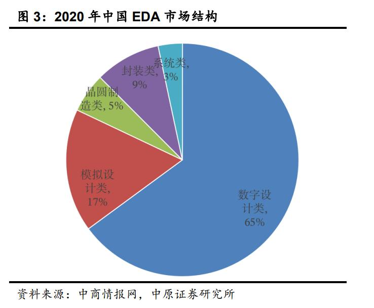 在市场规模方面,根据ESD Alliance公布的数据,数字设计工具占接近70%的份额,模拟/混合信号工具占20%左右,其他(PCB/CAM等)占10%。中原证券的报告显示,2020年国内EDA市场数字设计类EDA工具市场规模占比约65%,都印证了数字EDA在行业和市场中的核心地位。