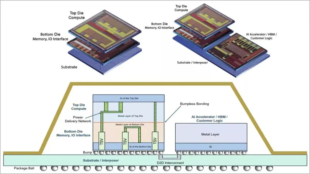 Socionext 在开始进行初始设计后,仅用七个月就完成了两次尖端 3DIC 芯片的成功流片,创造了复杂度和速度的新基准。该芯片基于先进的 TSMC-SoIC 技术,将两颗异构芯片(计算芯片采用 TSMC N3 工艺,I/O 芯片采用 TSMC N5 工艺)以面对面(F2F)配置进行堆叠。