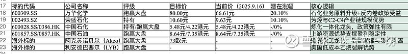 • 中国:优先选择有技术壁垒、受益政策的龙头,除万华化学、荣盛石化外,关注卫星化学(乙烷裂解成本优势)、华鲁恒升(煤头化工盈利稳定)。