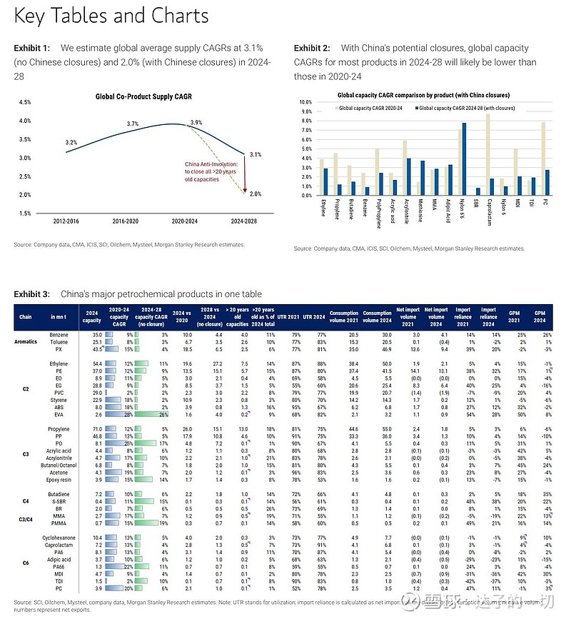 • 中国政策影响:中国20年以上老旧产能占比约10%-20%(如乙烯、丙烯等),若全面淘汰,可使全球产能增速降低1.1个百分点,但实际执行或介于乐观与悲观情景之间。
