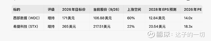 • 估值与目标价:当前股价对应14倍2026年PE,较希捷折价25%,但盈利增速与利润率相当,折价不合理。报告给予目标价171美元(60%上涨空间),牛市情景下可达215美元(111%上涨空间)。