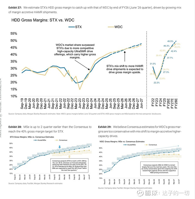 • 盈利预测:2025-2028年近线HDD容量复合增长率(CAGR)预计达22%,2027年初毛利率将突破45%,2028年EPS达12.84美元。