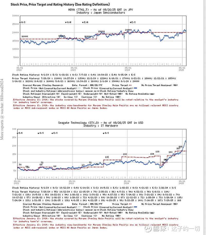 • HOYA(7741.T):近线HDD玻璃基板独家供应商,同时受益于HAMR技术推广,给予“持有”评级。