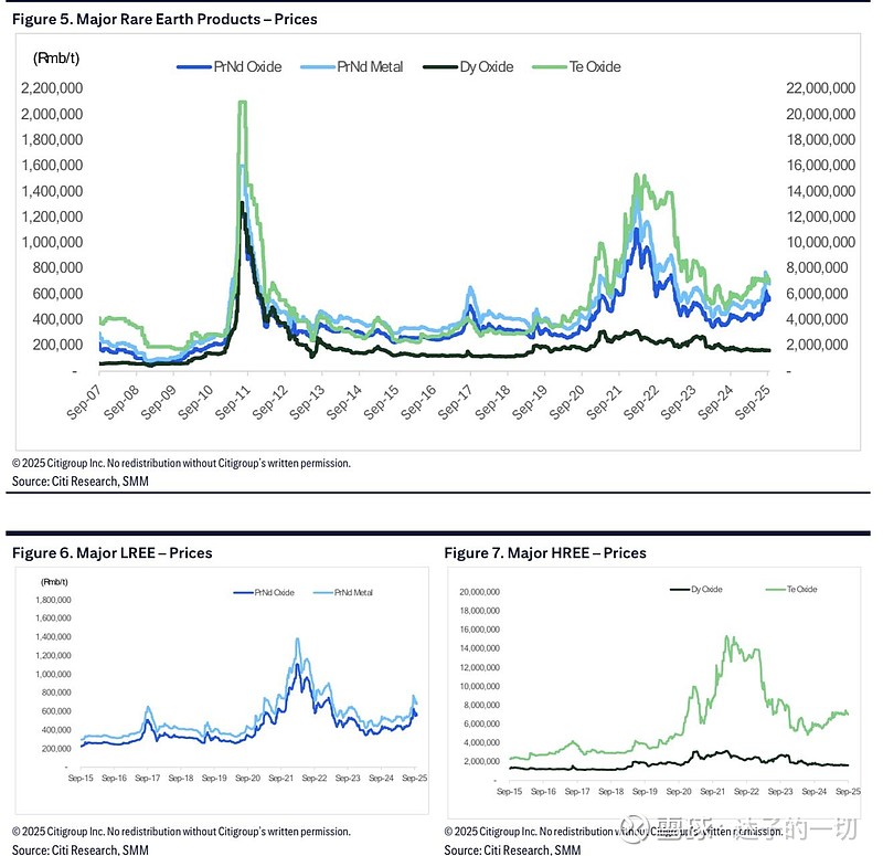 2025年10月10日,花旗发布《中国稀土行业深度报告》,指出稀土行业已成为支撑全球绿色能源转型、先进制造及国防领域的战略性产业。当前行业处于上行周期早中期,短期供需紧张与地缘风险将支撑价格坚挺,中期随着新产能释放,价格有望进入更高且更稳定的区间。报告首次覆盖并给予北方稀土(600111.SS)“买入”评级,目标价72元;给予中国稀土(000831.SZ)“中性”评级,目标价61.6元。