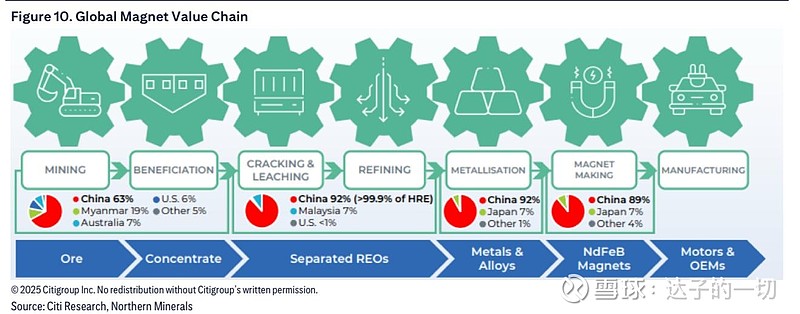 • 中国政策:从“出口配额”转向“全链条监管”,2024年《稀土管理条例》落地,建立从采矿到进出口的追溯体系;2025年收紧出口许可,部分稀土及磁体产品需端用户证明。