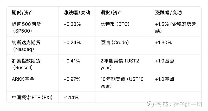 一、隔夜市场核心数据