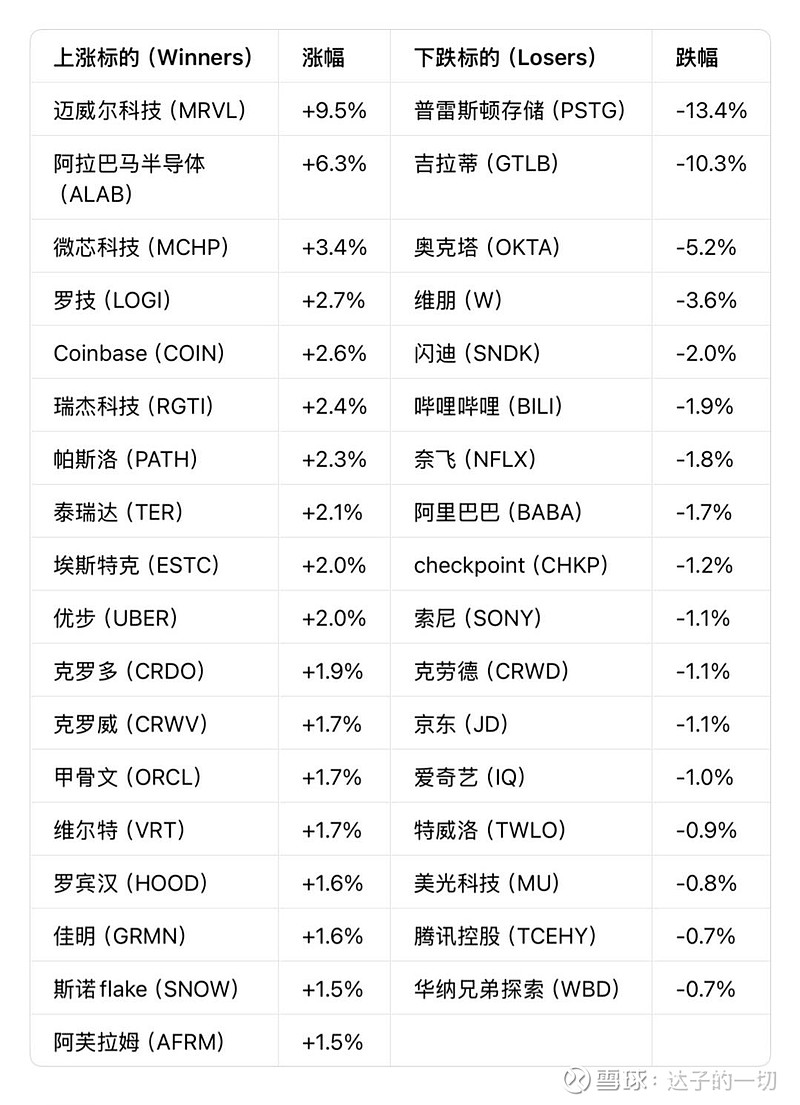 1. 迈威尔科技(MRVL):上涨8%,AI数据中心业务成增长引擎