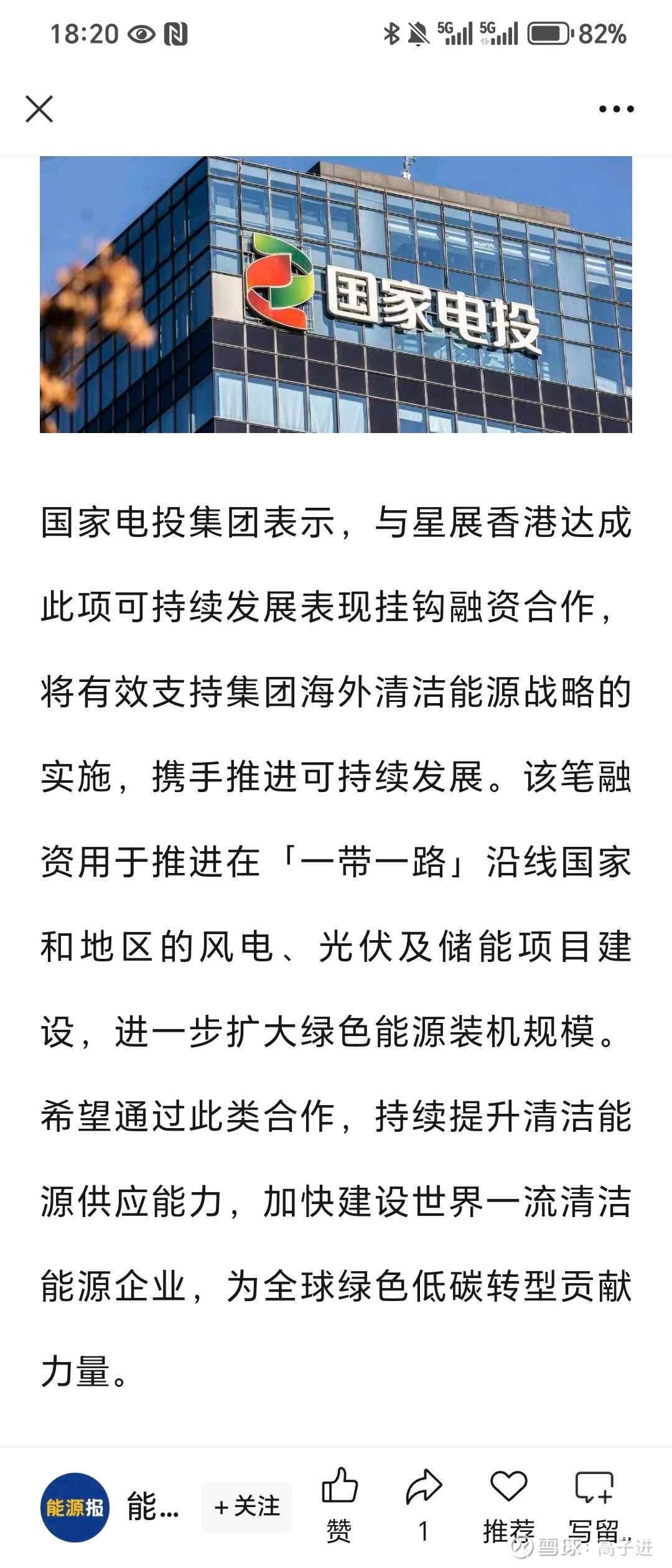新闻明确指出,这笔融资将用于支持集团在 “一带一路”沿线国家的风电 光伏及储能等清洁能源项目。这好像正是 电投国际(上海电力) 被赋予的核心使命——归集持有并管理国家电投的海外清洁能源资产吧还记得上海电力的半年报吗 集团爸爸怎么承诺的 未来新增的新能源资产会 优先给谁?新的装机增量必将直接增厚电投国际(上海电力)的净利润实打实吃的政策红利啊。$上海电力(SH600021)$$上海电力(SH600021)$查看图片