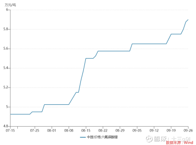 产品市场,从7月15日开始,#六氟磷酸锂涨价# 六氟磷酸锂价格就一路上涨,从4.93万元/吨(7月15日)上涨5.90万元/吨(9月26日),区间涨幅接近20%。