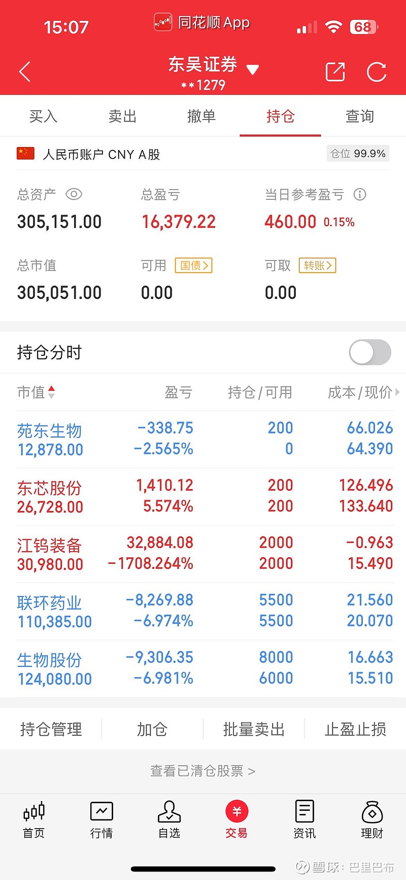 年前最后一个交易日,$江钨装备(SH600397)$ 抛得还剩个底仓,中长线想象的空间还是比较大,年后逢低可以慢慢再买回来。$苑东生物(SH688513)$ 建了点底仓,长线还是老样子,下跌15到20个点,伞型补仓。