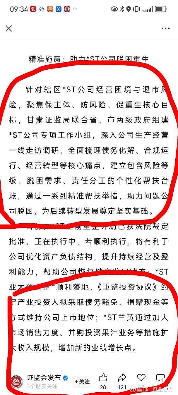 $*ST兰黄(SZ000929)$ 甘肃省证监局联合甘肃省,市政府成立*St专项工作小组解决公司经营转型,脱困需求,责任分工个性化帮扶,也就是一对一帮扶,通过一系列精准帮扶举措,助力公司脱困,为后续转型发展奠定扎实基础,并取得成绩获得甘肃省证监局,证监会认可,结合昨天公告,黄河已经转型成功。