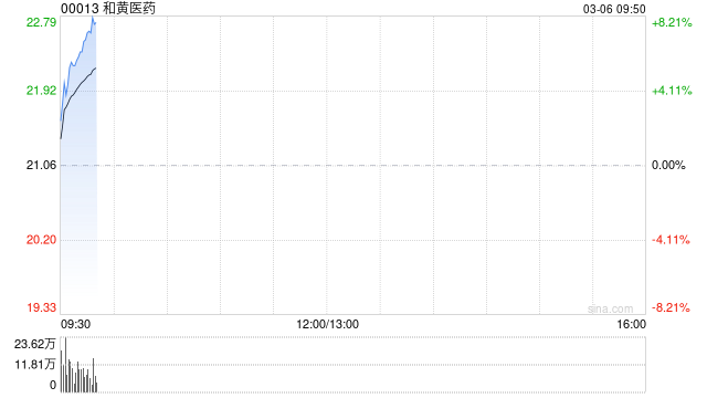 和黄医药(00013)早盘股价上涨7.41%,报22.62港元,成交额4229.009万港元。