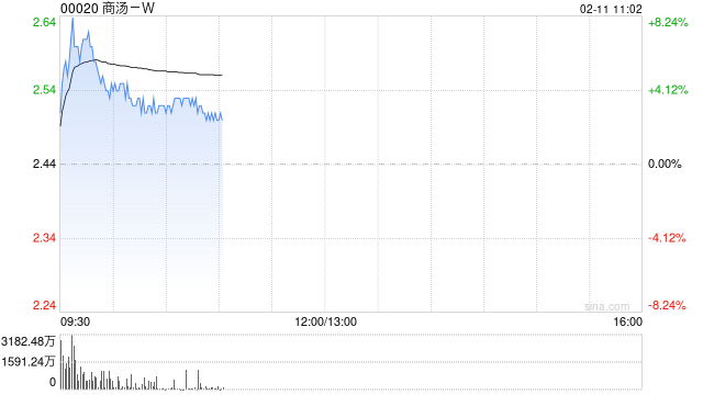 商汤-W(00020)盘中涨超7%,截至发稿,股价上涨2.87%,现报2.51港元,成交额11.98亿港元。