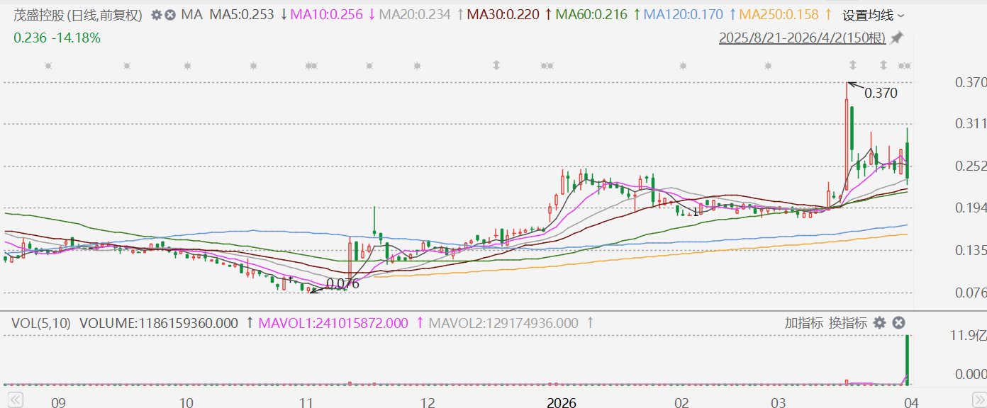 格隆汇4月2日|茂盛控股(0022.HK)盘中大跌,一度跌近18%,报0.226港元,截至目前成交额超2亿港元,显著放大。消息面上,公司公布,获由执行董事兼主席伦耀基间接全资拥有的Winland Wealth (BVI) Limited(卖方)通知,拟向投资者配售不少于9.29亿股及最多13.27亿股股份,每股作价0.17港元。当中,13.27亿股股份佔公司已发行股本约67.47%,即卖方所持全部股份,卖方将套现最多2.26亿港元。于配售事项完成后,卖方将不再持有公司任何股份,因此不再为公司的控股股东。