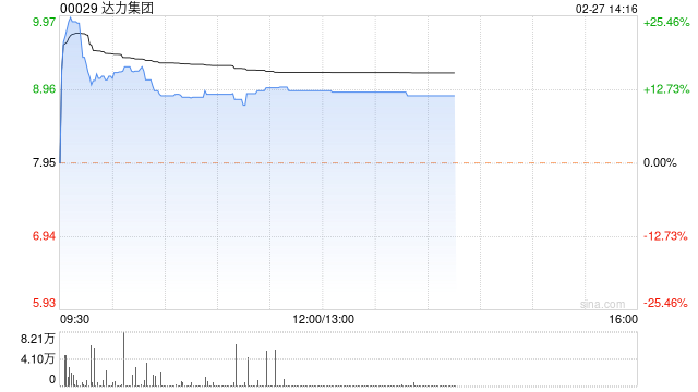 达力集团(00029)午盘上涨12.33%,现报8.93港元,成交额899.58万港元。