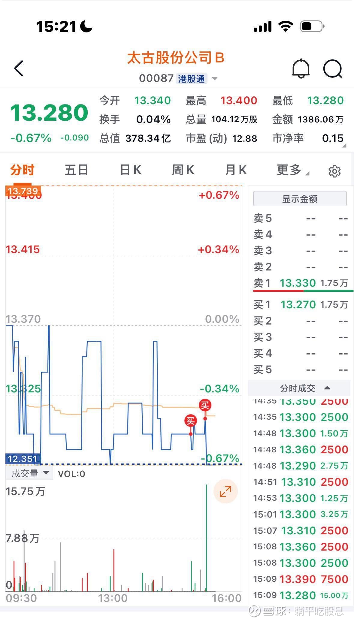$太古股份公司B(00087)$ PB 0.15?可能老板自己都不知道这个B怎么算出来的。