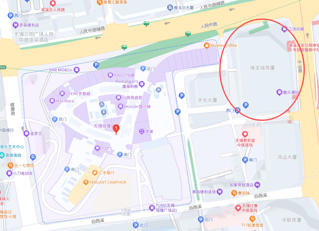 图片来源:百度地图,商业客截取整理在恒隆广场到来之前,开业于1996年的新世界百货,曾是无锡奢侈品购物的首选之地。一度汇聚了众多国际品牌,引领当地的高端消费方向。