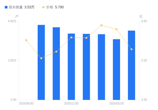 近一年(2025年3月31日至2026年3月31日),四川成渝A股股东户数从4.96万户,减低至3.53万户,降幅28.85%,区间股价上涨22.93%。