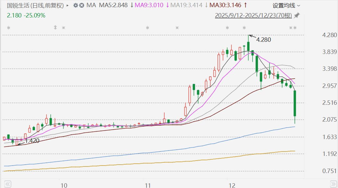 格隆汇12月23日|国锐生活(0108.HK)大跌,盘中一度跌近32%至1.98港元,股价创11月7日以来新低。消息面上,公司遭香港证监会点名股权高度集中。