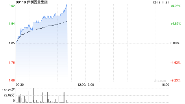 内房股今日普涨,截至发稿,保利置业集团(00119)上涨9.19%,报2.02港元;中国金茂(00817)上涨3.31%,报1.25港元;新城发展(01030)上涨2.93%,报2.11港元;中国奥园(03883)上涨1.19%,报0.085港元。