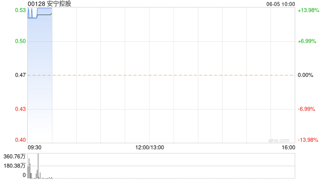 安宁控股(00128)早盘高开,上涨13.98%,报0.53港元,成交额892.392万港元。