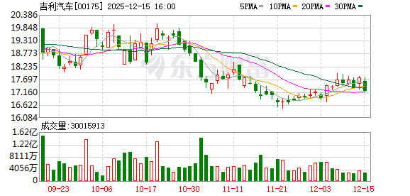 吉利汽车(00175/80175)发布公告,2025年12月15日,公司回购股份199万股,回购金额为3475万港元。