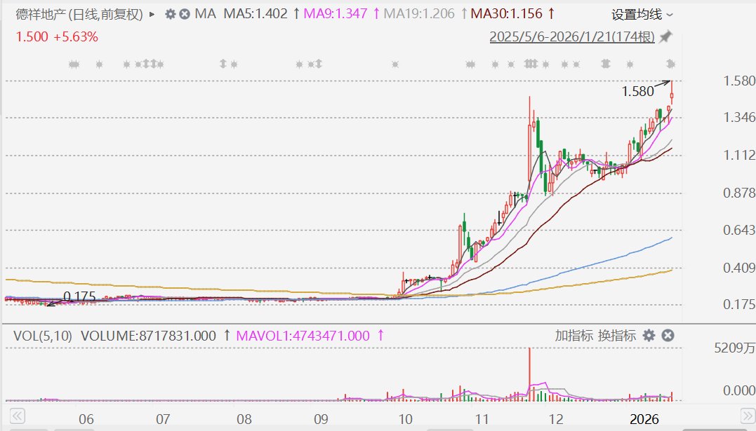 格隆汇1月21日|德祥地产(0199.HK)向香港立法会议员吴杰庄等配股,今日复牌,盘中一度升11.27%至1.58港元。
