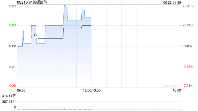 达芙妮国际(00210)盘中曾涨近7%,股价现涨5.02%,报0.23港元,成交额143.67万港元。