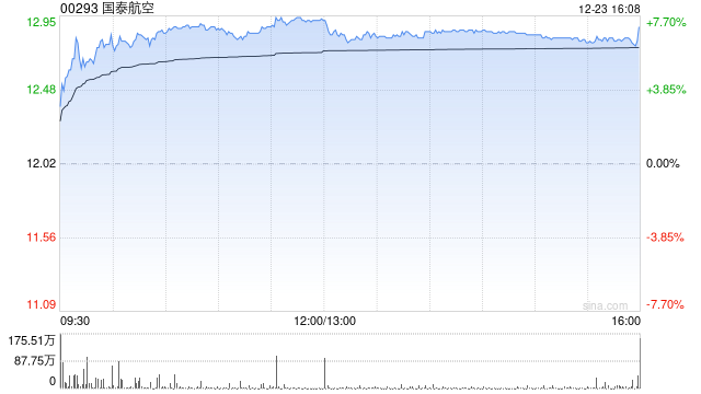 瑞银发布研报称,尽管基数已处于高位,国泰航空(00293)管理层预计2025全年综合财务表现将超越去年。虽然管理层并未具体说明2025财年盈利增长的幅度,但该行认为该预测可视为优于预期。国泰去年净利润96亿元,为2011年以来的最高水平。给予目标价14港元,评级“买入”。