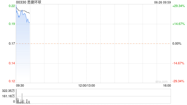 思捷环球(00330)早盘一度涨近30%,股价上涨19.76%,现报0.20港元,成交额340.05万港元。