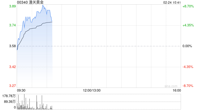 潼关黄金(00340)早盘股价上涨7.82%,现报3.86港元,成交额9445.06万港元。