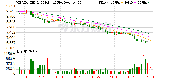 VITASOY INT'L(00345)发布公告,2025年12月1日,公司回购股份197万股,回购金额为1302万港元。
