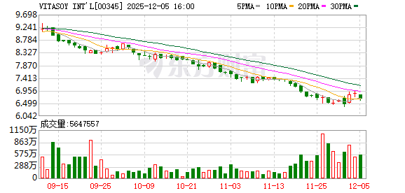 VITASOY INT'L(00345)发布公告,2025年12月5日,公司回购股份130万股,回购金额为865万港元。
