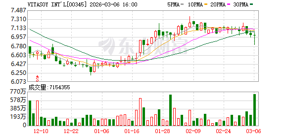 VITASOY INT'L(00345)发布公告,2026年3月6日,公司回购股份57万股,回购金额为399万港元。