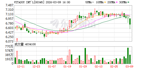 VITASOY INT'L(00345)发布公告,2026年3月9日,公司回购股份10万股,回购金额为66万港元。