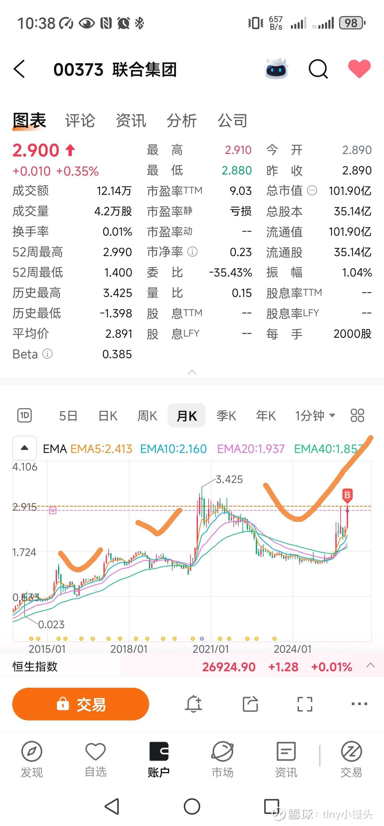 的认股证,曲线增持亚太资源。 现在利用新规则增持新鸿基,应该是港股第一案例。今年上海天安项目大卖,大量现金回笼,天安(00028) 预测PE不到2倍。联合集团现金满满,是目前香港传统富豪中实力最强之一,用行动说明旗下资产低估...