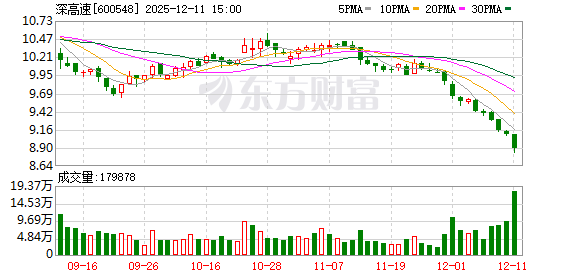 12月11日,深高速(600548/00548)发布公告,持股5%以上股东江苏云杉资本管理有限公司于2025年9月22日至2025年12月10日期间,通过沪港通以集中竞价方式增持本公司H股股票2538万股,权益变动前持股比例为12.00%,增至权益变动后持股比例的13.00%。
