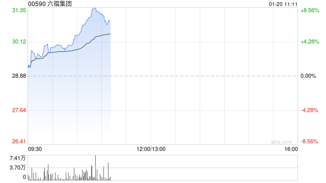 六福集团(00590)早盘股价上涨6.44%,现报30.74港元,成交额3936.82万港元。