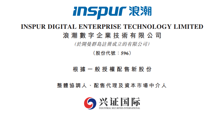 浪潮数字此次配售所得净额约70%用于补充集团在人工智能、云及工业软件等领域研发投入、业务扩张及增长计划所需的长期资金;约30%用于补充公司的一般营运资金。